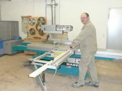 Herr Schütz an der Formatkreissäge
